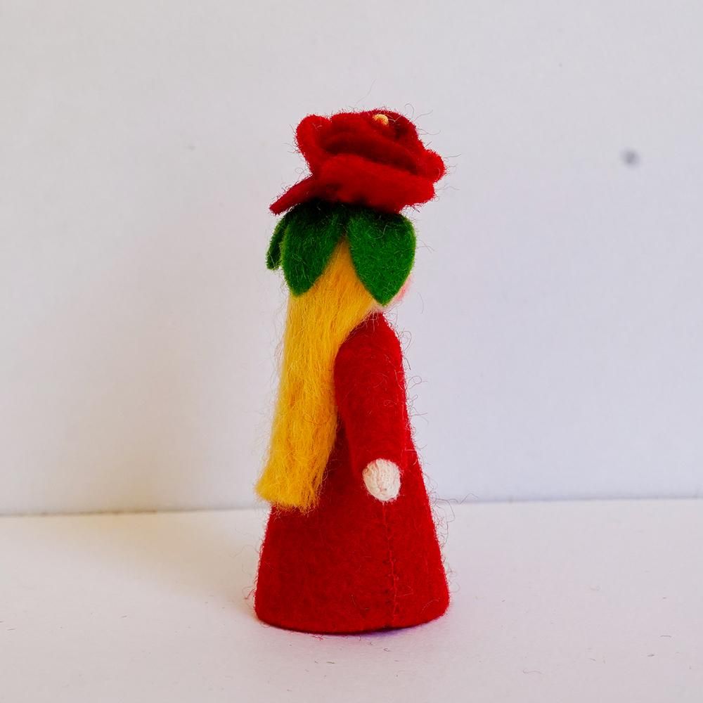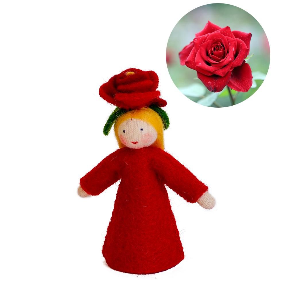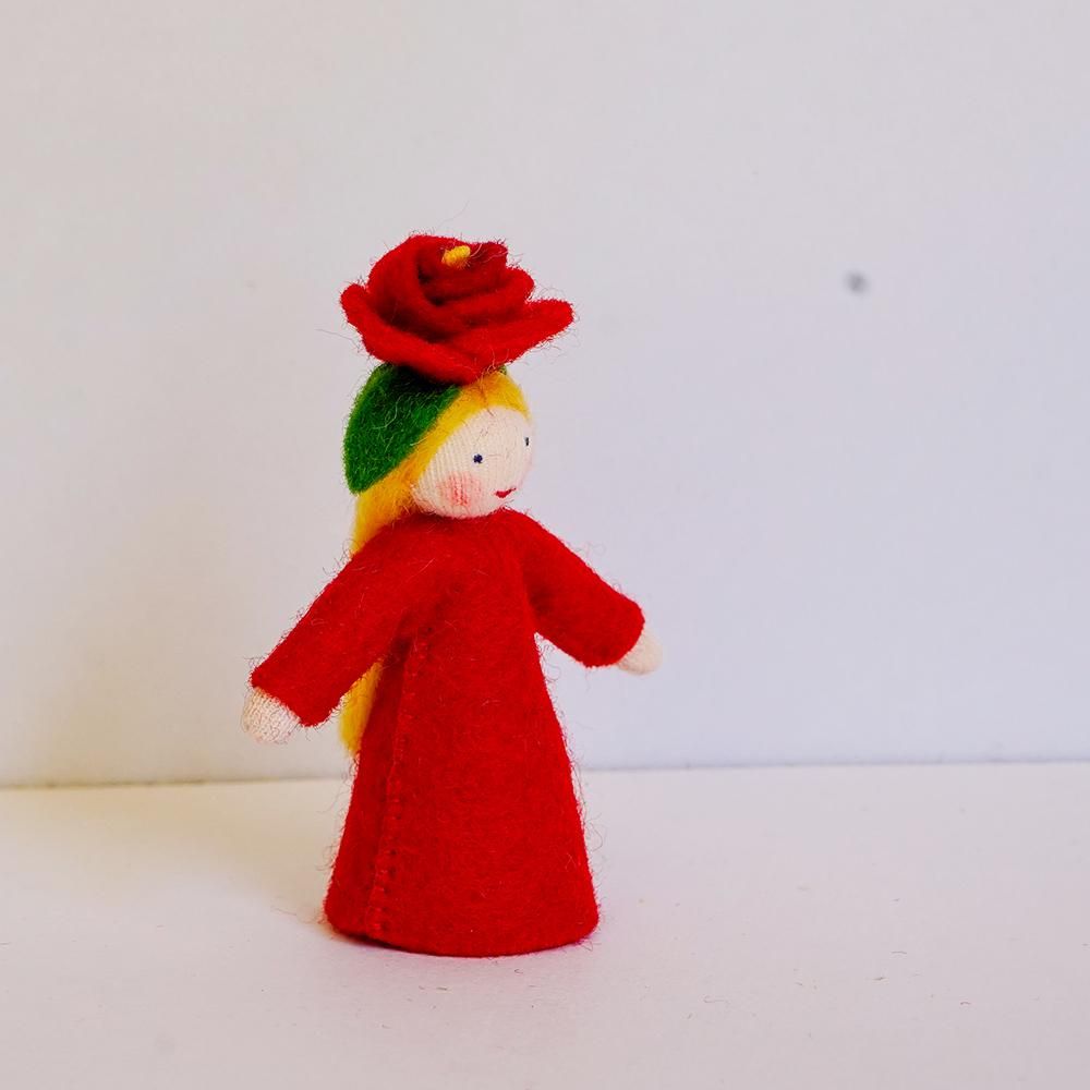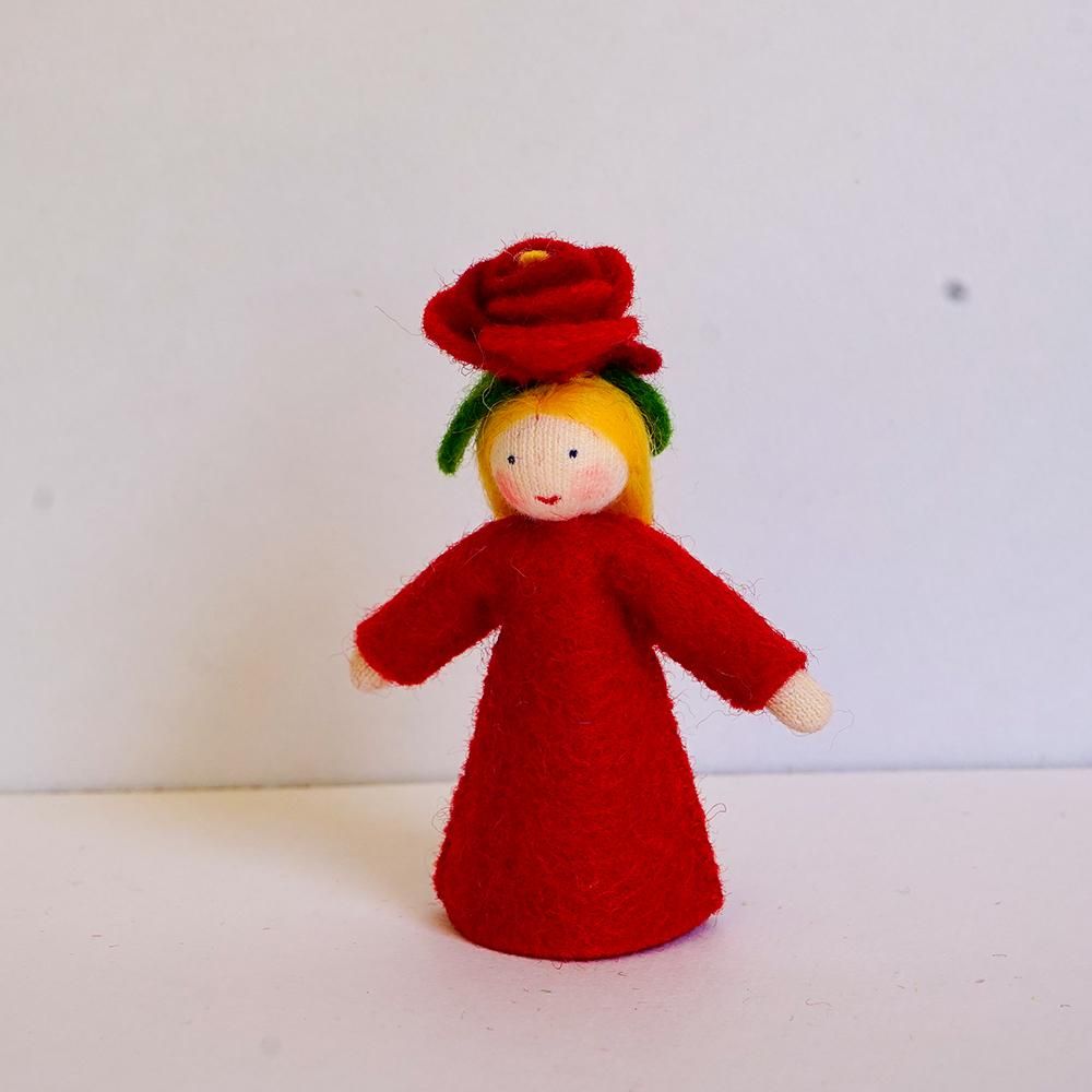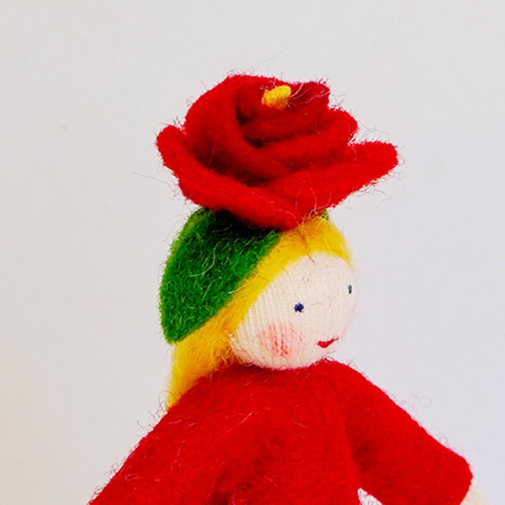 鮮やかな赤と頭のバラのお花が素敵なレッドローズのアンブロシウスフェアリー、花の妖精です。