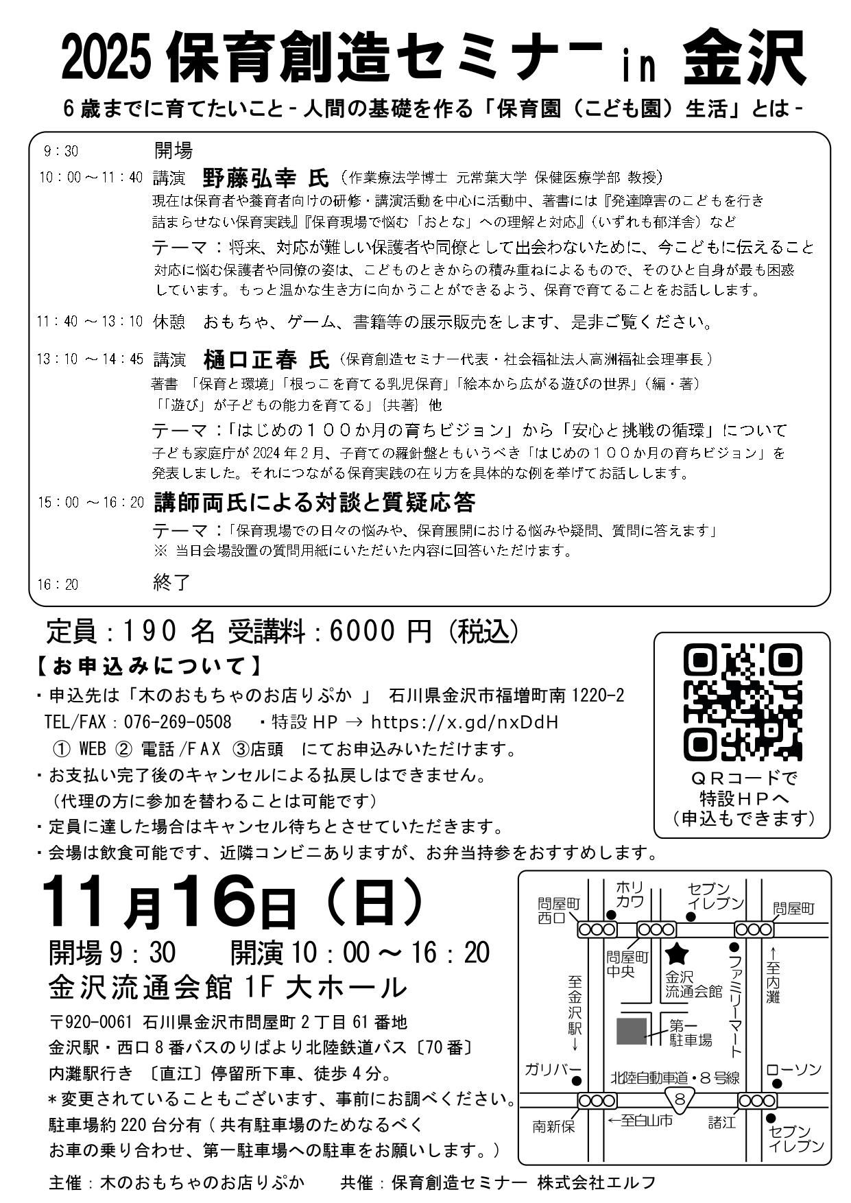 * 2025年11月16日の保育創造セミナーin金沢参加申し込み受付け中です