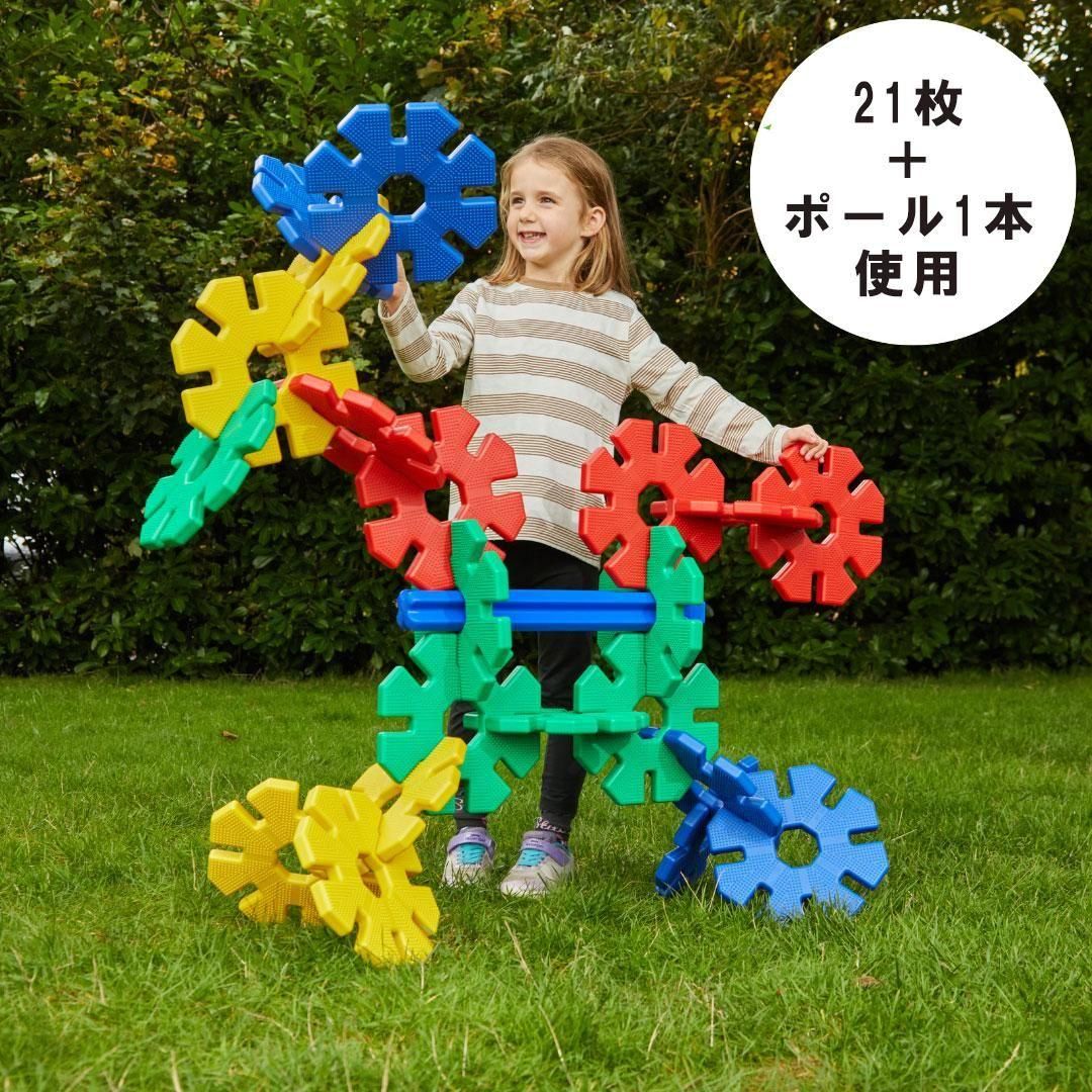 ピースの幅は 24cm、大きさがあるので簡単に大迫力なモデルを組み立てることができ、乗り物、動物、ロボット、かまくら、おうち様々な形を作って楽しめます。