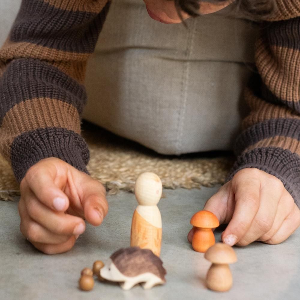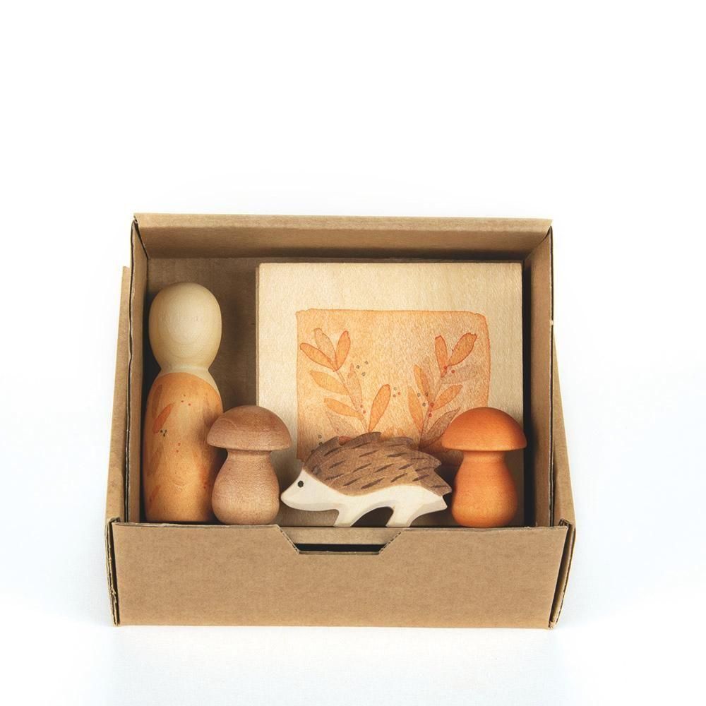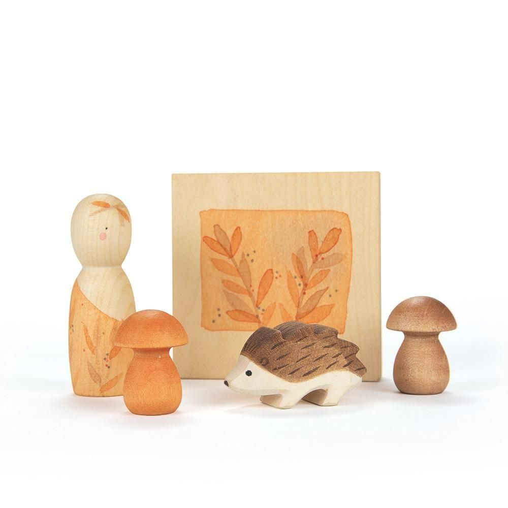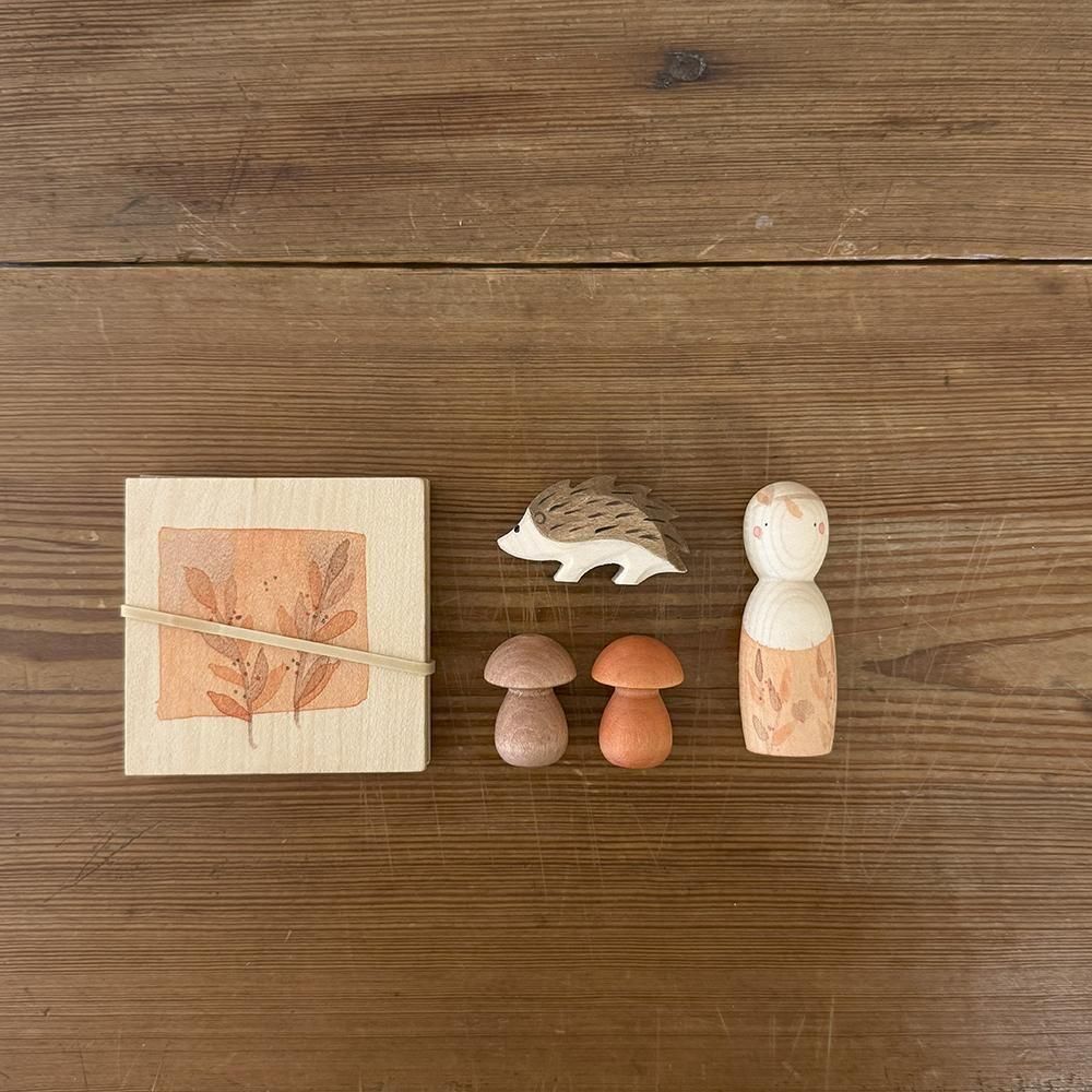 ハンドペイントされたnins(人)、オストハイマーのハリネズミ、まんだらキノコ、 それと合わせてスプリングでもセットにあった押し花キットがついています。